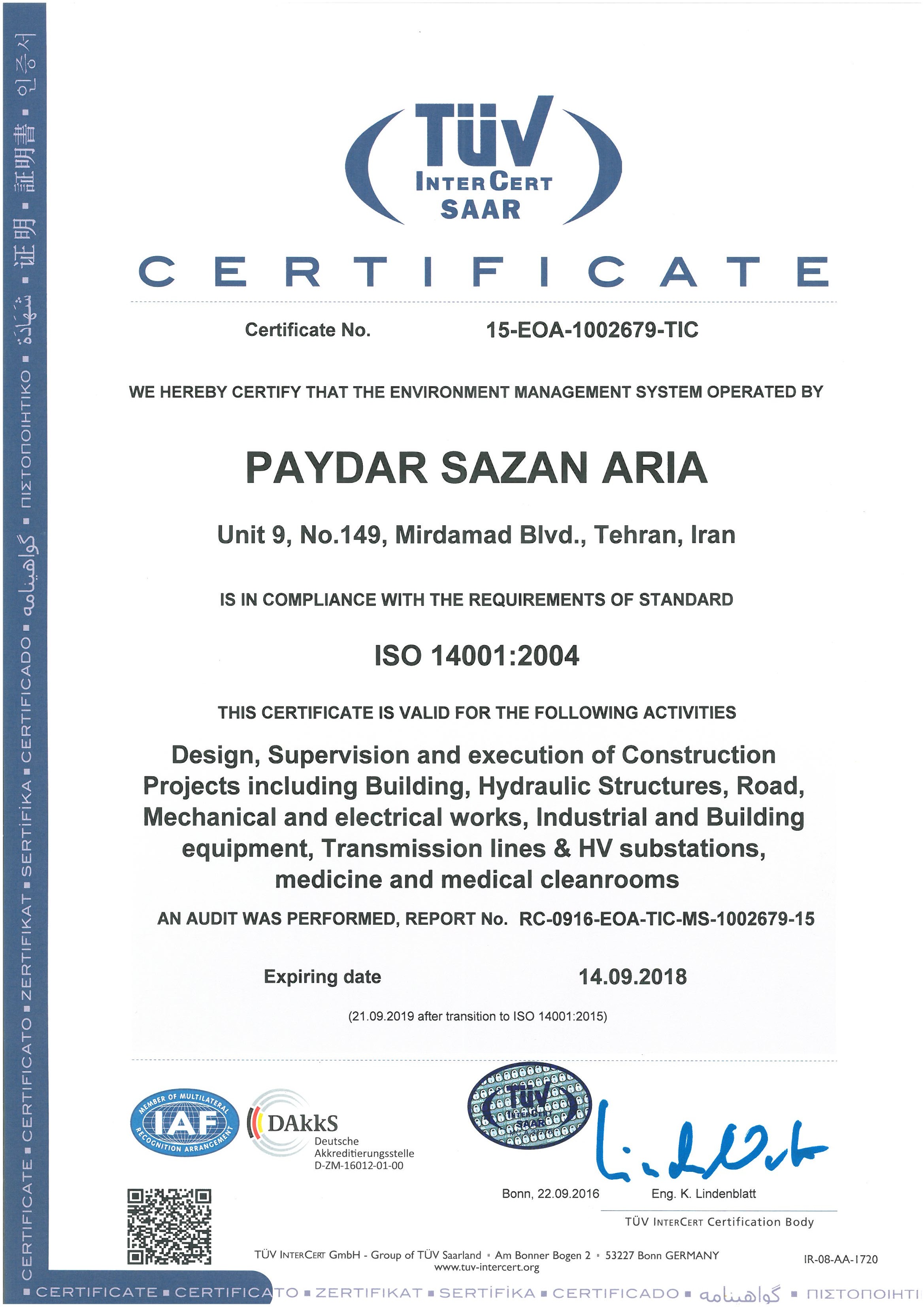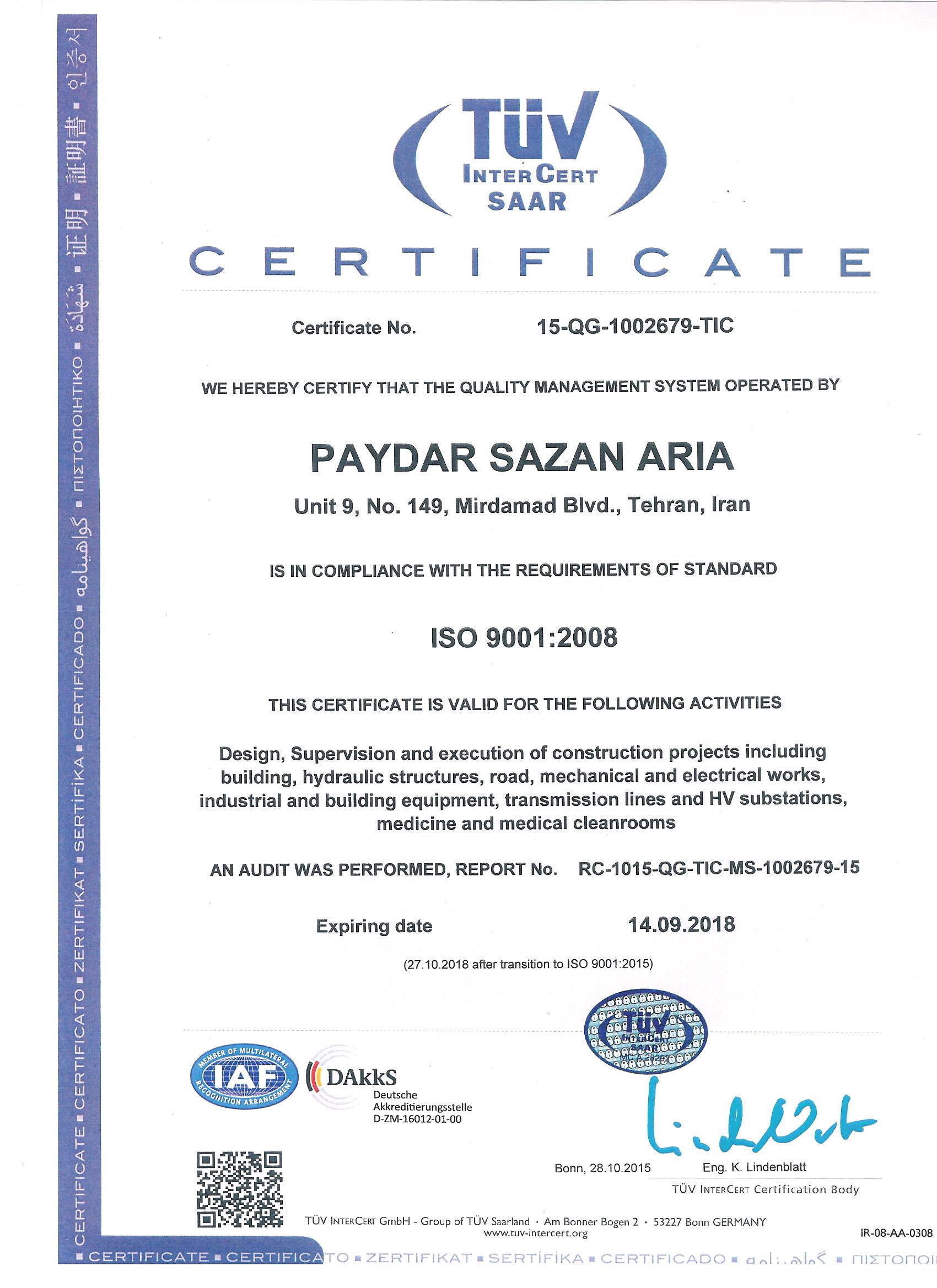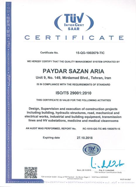 شرکت پایدار سازان آریا دارای گواهینامه های داخلی و بین المللی ذیل می باشد .