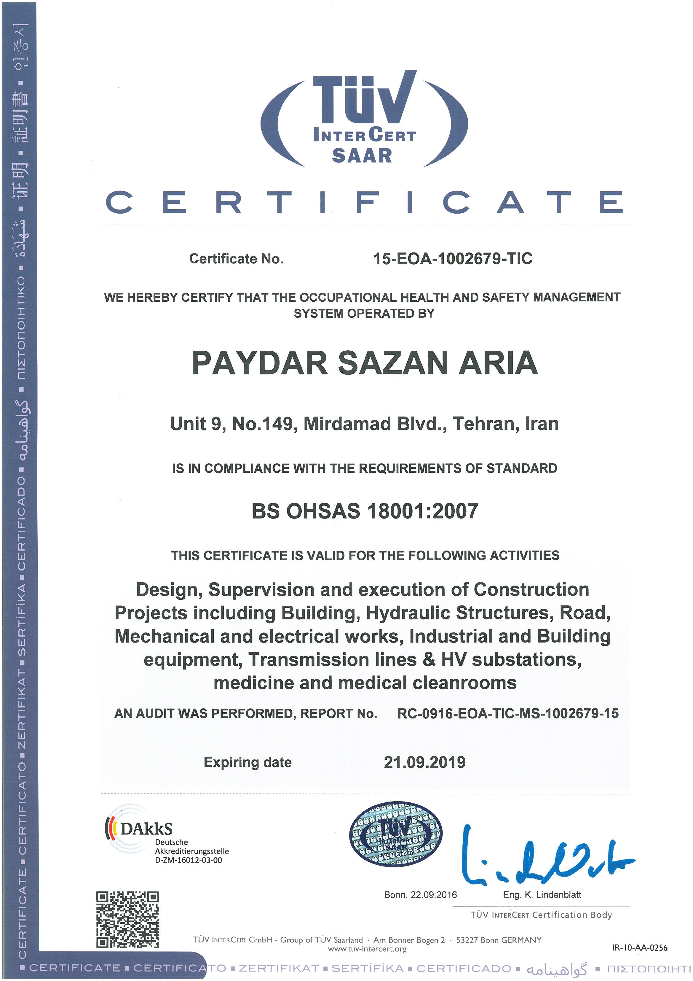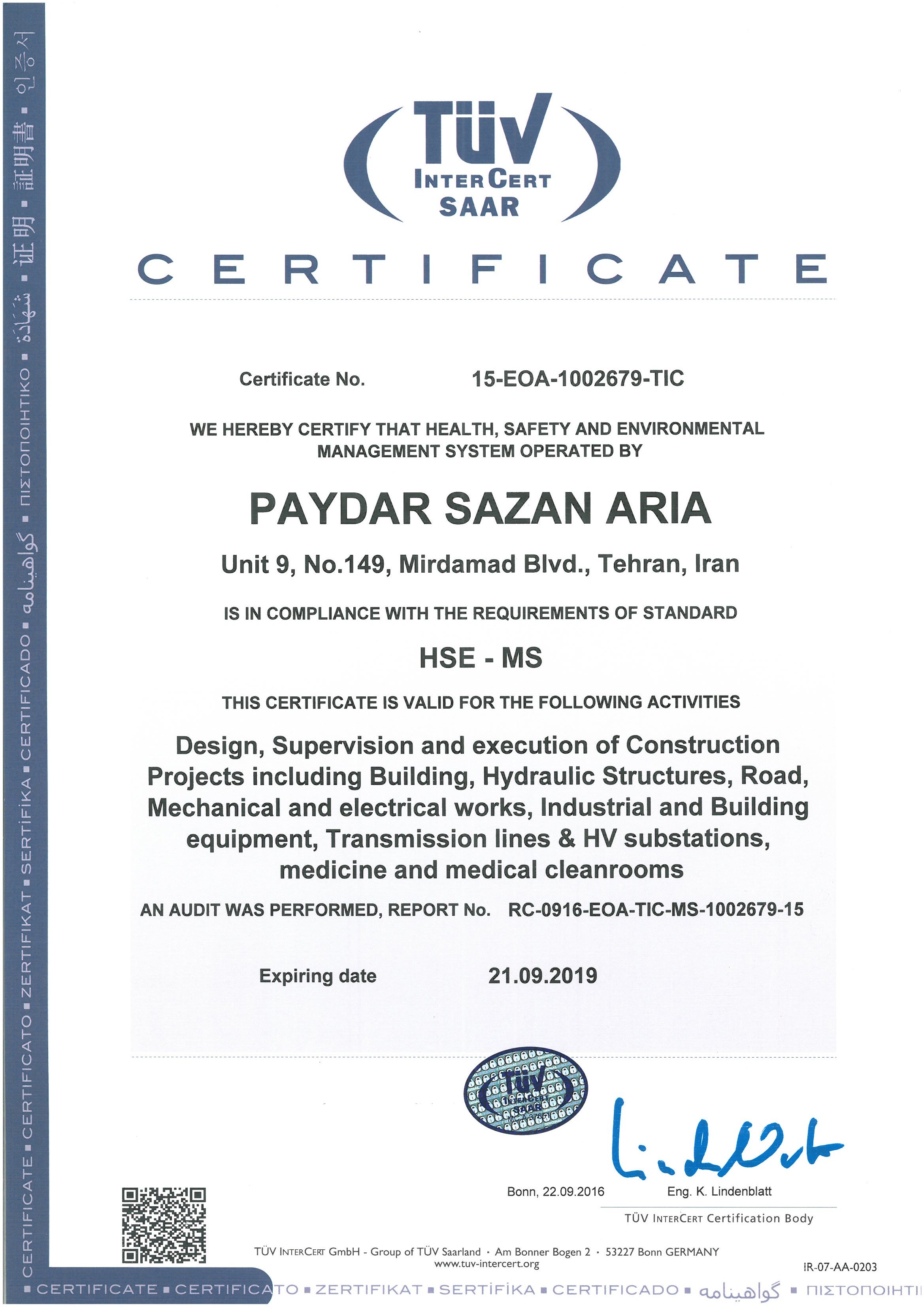 شرکت پایدار سازان آریا دارای گواهینامه های داخلی و بین المللی ذیل می باشد .