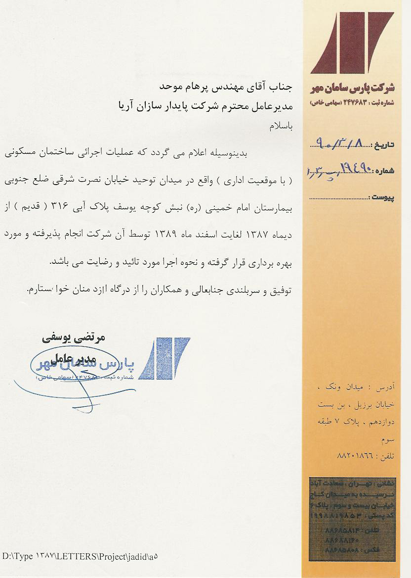 تقدیر نامه شرکت پارس سامان مهر